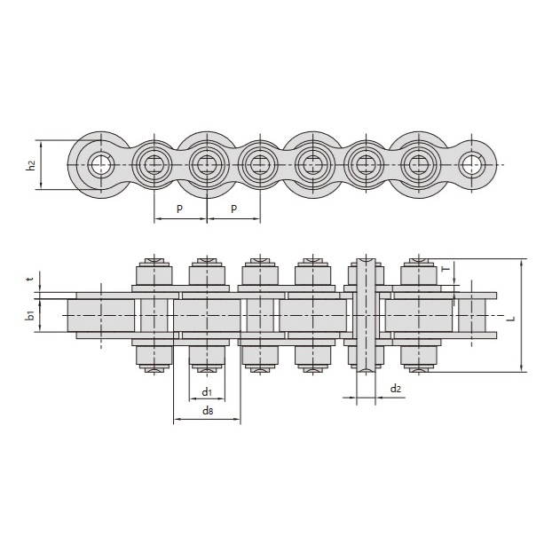 - Σχεδιασμός μεγάλου και μικρού κυλίνδρου:Ο πρώτος κύλινδρος έχει διάμετρο μεγαλύτερη από το ύψος της εσωτερικής πλάκας αλυσίδας, εκθέτοντας την εξωτερική του επιφάνεια πέρα από το άκρο της πλάκας αλυσίδας. Ο δεύτερος κύλινδρος είναι μικρότερος, με διάμετρο μικρότερη από το ύψος της εσωτερικής πλάκας αλυσίδας.