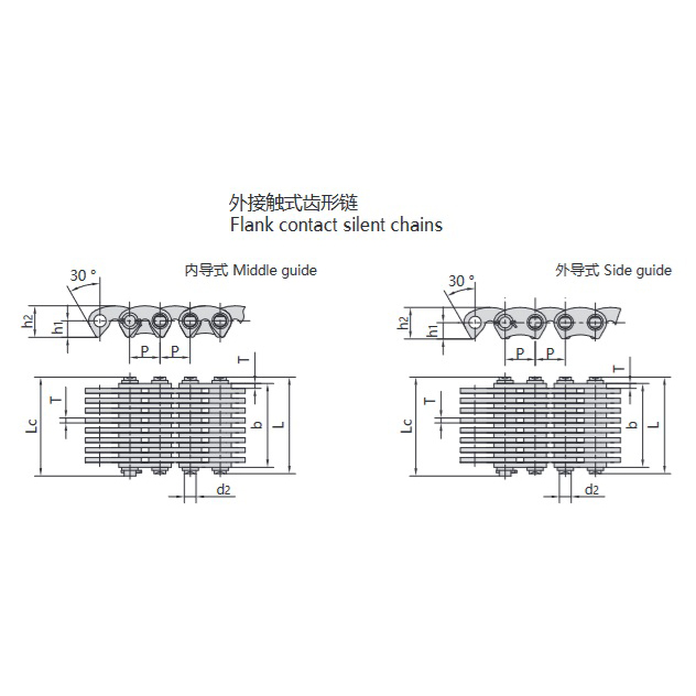 • Εσωτερικά-εξωτερικά οδοντωτή αλυσίδα:Συνδυάζει τα πλεονεκτήματα της εσωτερικής και της εξωτερικής σύμπλεξης. Ιδανική για συνθήκες υψηλής ταχύτητας, μεταβλητής ταχύτητας και μεταβλητού φορτίου. Ελαχιστοποιεί τα πολυγωνικά φαινόμενα, τους κραδασμούς, τις δονήσεις και τον θόρυβο, ενώ αυξάνει την απόδοση της μετάδοσης.