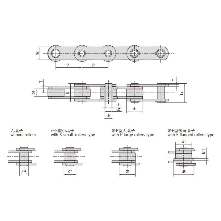 • Διατίθεται σε σχεδιασμό χωρίς κυλίνδρους ή εξοπλισμένη με μικρούς κυλίνδρους τύπου S, μεγάλους κυλίνδρους τύπου P και κυλίνδρους τύπου F για διαφορετικές ανάγκες μετάδοσης.