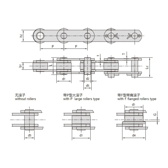 - Οι αλυσίδες μεταφοράς της σειράς Z αποτελούνται κυρίως από συμπαγή πείρο, κοίλο πείρο, μεγάλο κύλινδρο και υπερυψωμένη πλάκα αλυσίδας. Αυτά τα εξαρτήματα μπορούν να διαμορφωθούν με διάφορα εξαρτήματα για να ικανοποιήσουν συγκεκριμένες απαιτήσεις εφαρμογής σύμφωνα με διαφορετικές συνθήκες εργασίας.